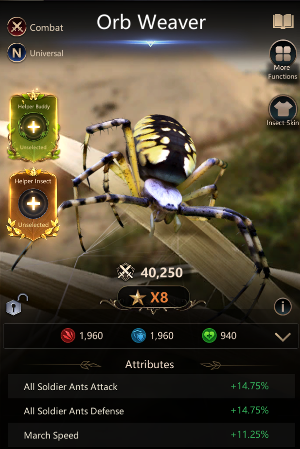 - Get Rover Beetle up to 8* and replace Orb Weaver